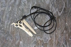 Kaiverrustyö Sakset ja Kampa valaan hampaasta