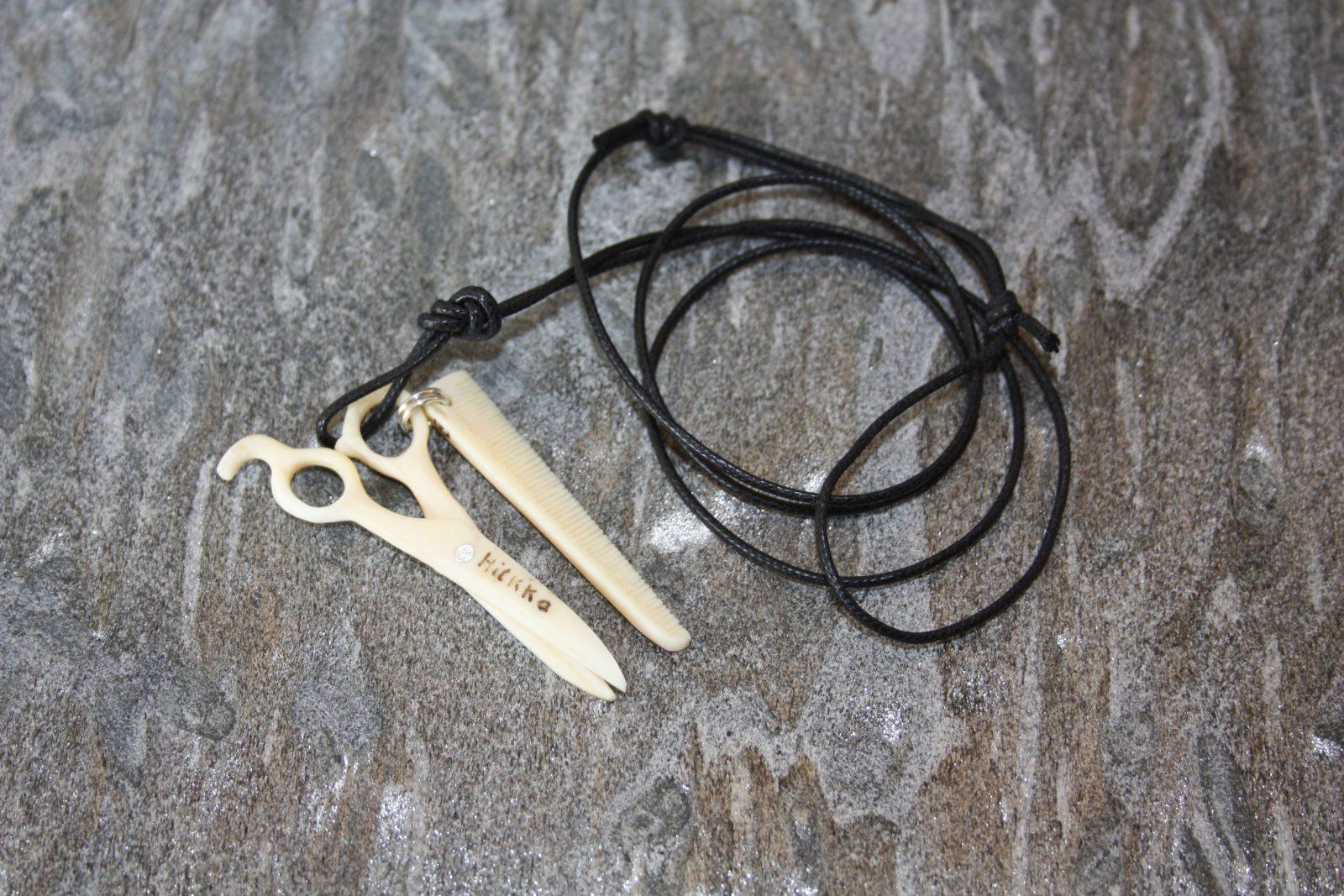 / Kaiverrustyö Sakset ja Kampa valaan hampaasta