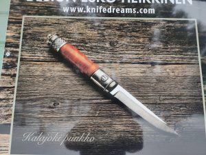Kalajokipuukko: Helat 925 hopeaa, terä hopeateräs, kahva visakoivua.