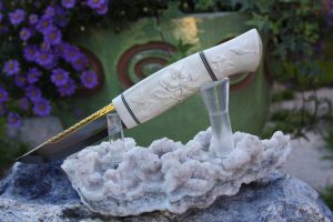 Kolibri puukko kaiverrustyö hirven sarvesta