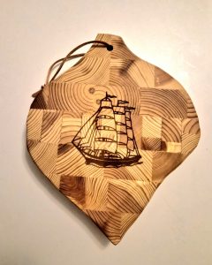 Pannunalusta koko noin 150 x 30 mm Purjelaiva/ kompassi