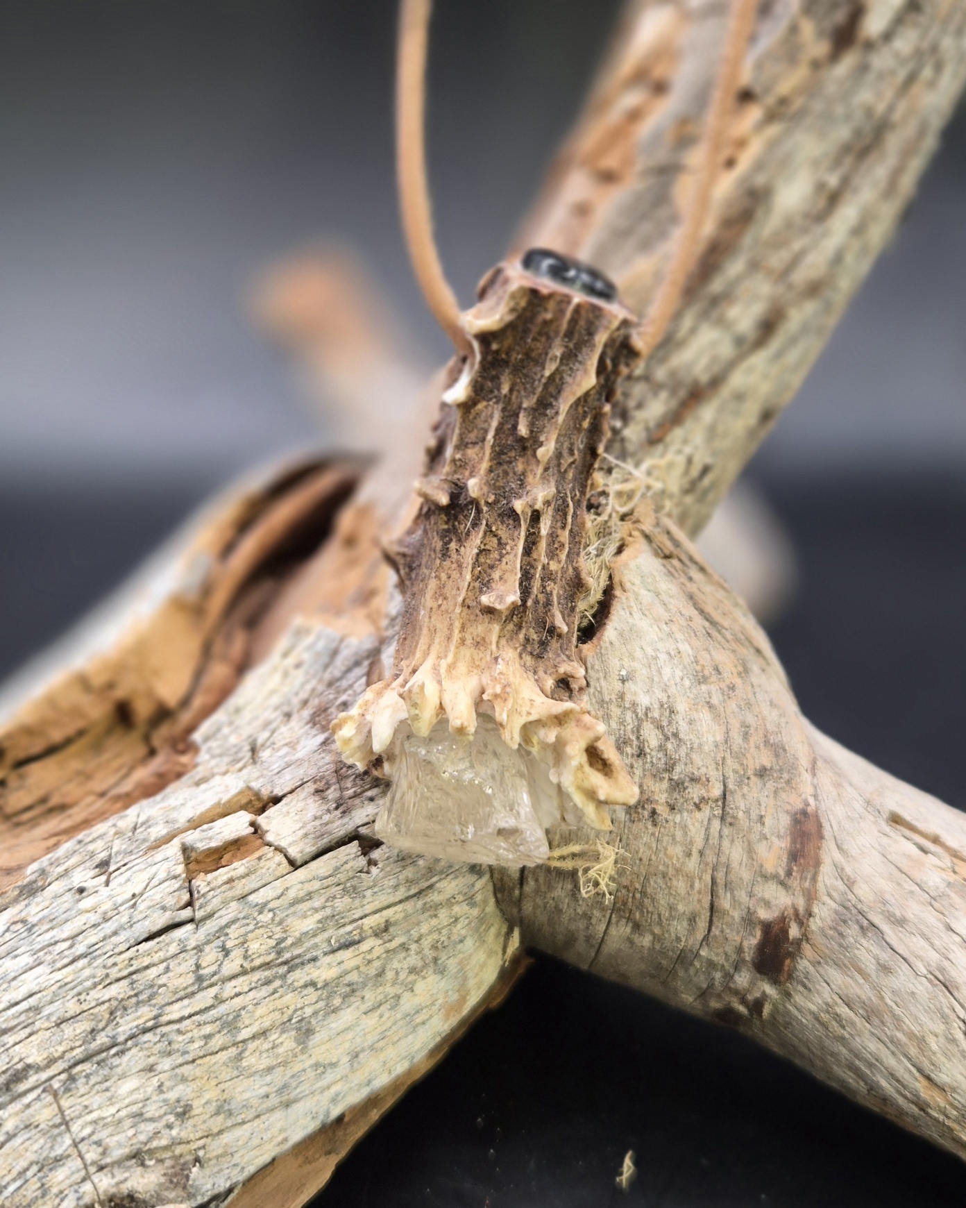 Peuransarviriipus kivi Topaasi/ Spektroliitti, nahkanauha.