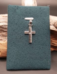 Ristiriipus hopeaa, kivet zirkoni. Hinta ilman ketjua.