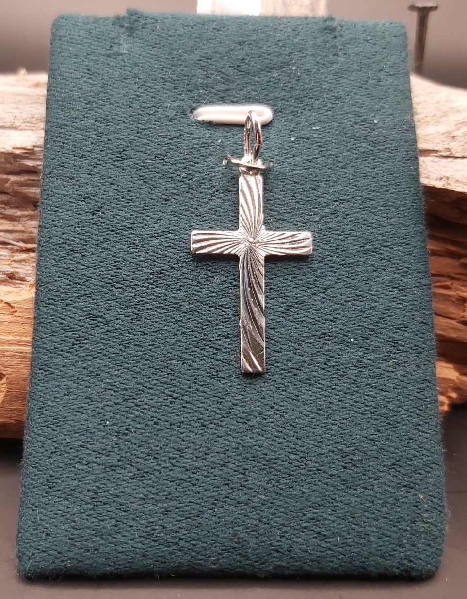 Timanttileikattu ristiriipus hopeaa. Hinta ilman ketjua.