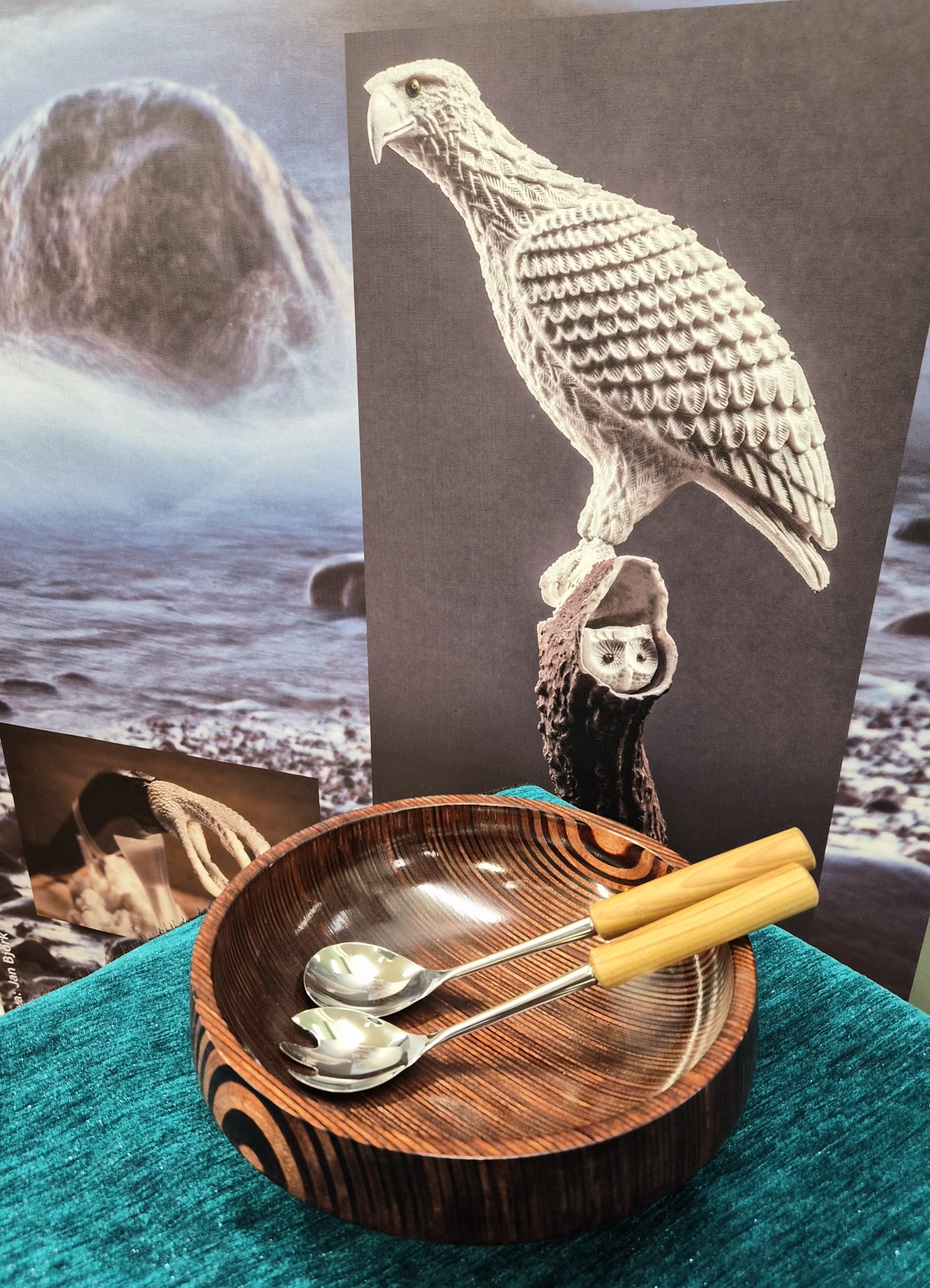 salaattikulho sorvattu paksusta vaneerista. molempiin saa omistuskaiverrukset samaan hintaan.