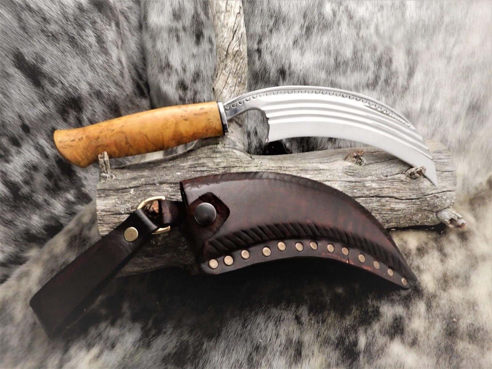 Tilaustyö asiakkaan terään kahva visakoivua tuppi parkkinahkaa.