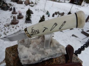 Tilaustyö puukko kirvesmiehelle. hirvensarvesta.